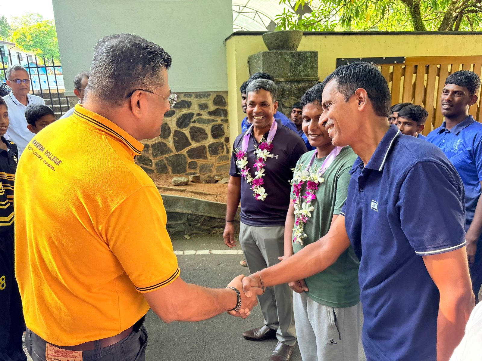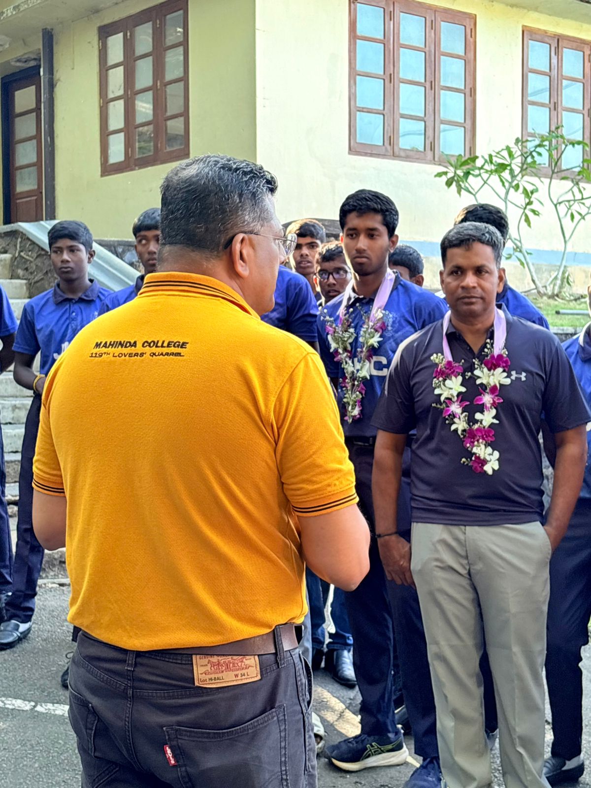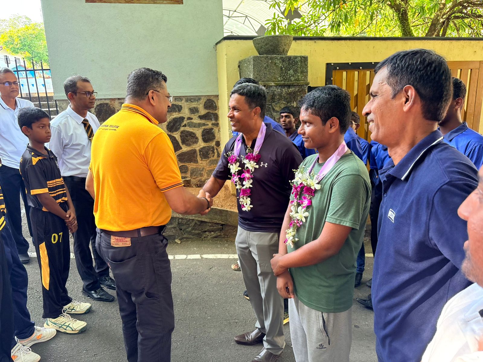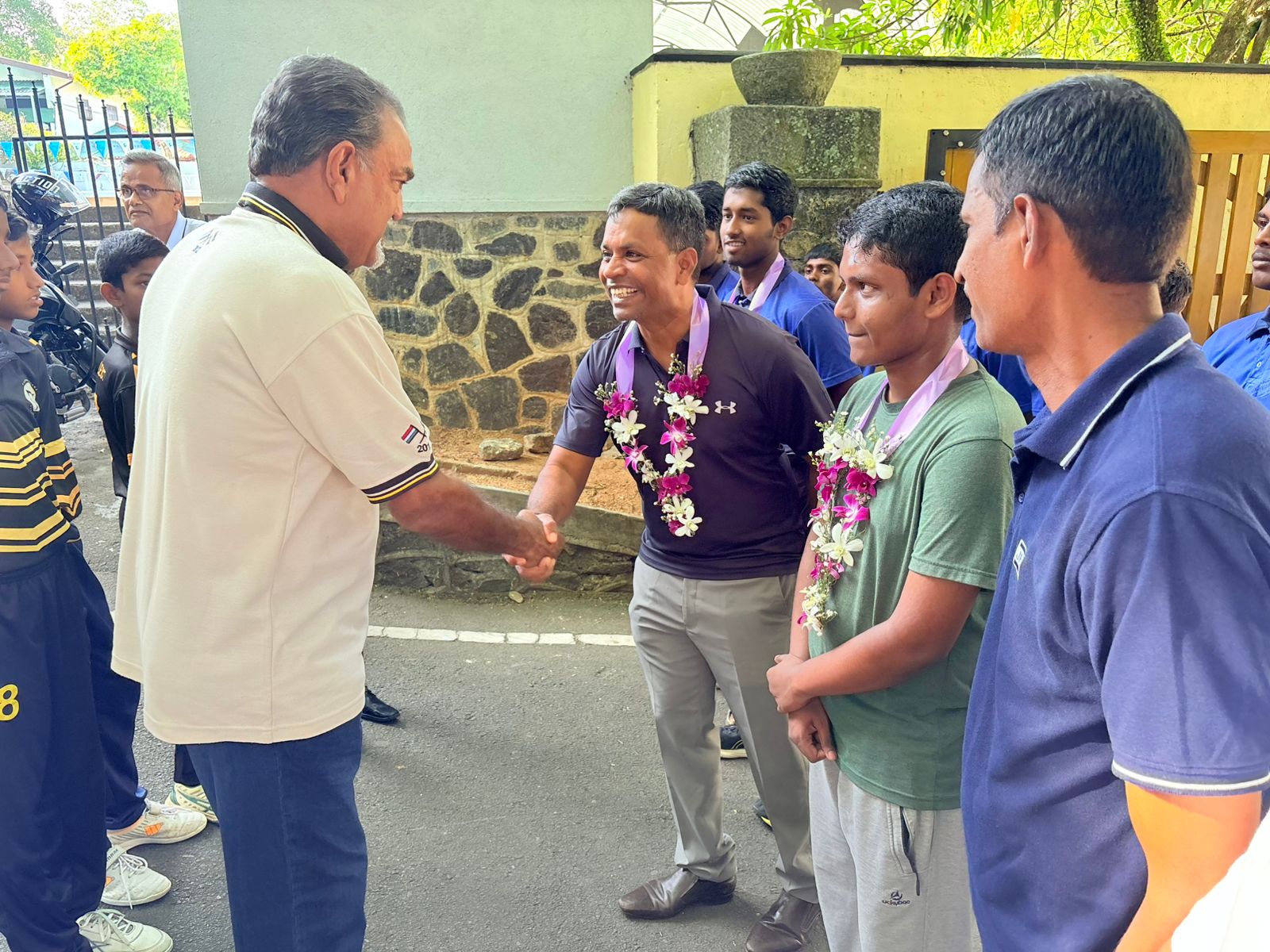 The Jaffna Hindu College team received a heartfelt welcome at the gates of Mahinda College by fellow Mahindians, members of the school cricket and debating team, and representatives from Mahindians UAE and the Mahinda Club.