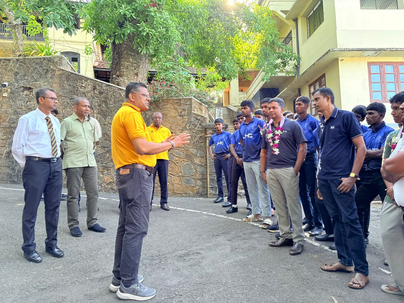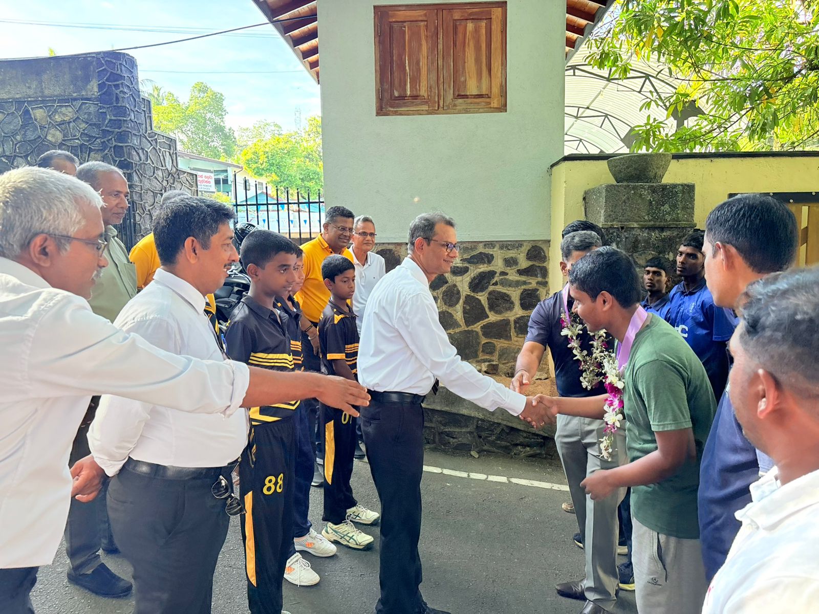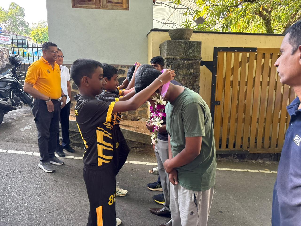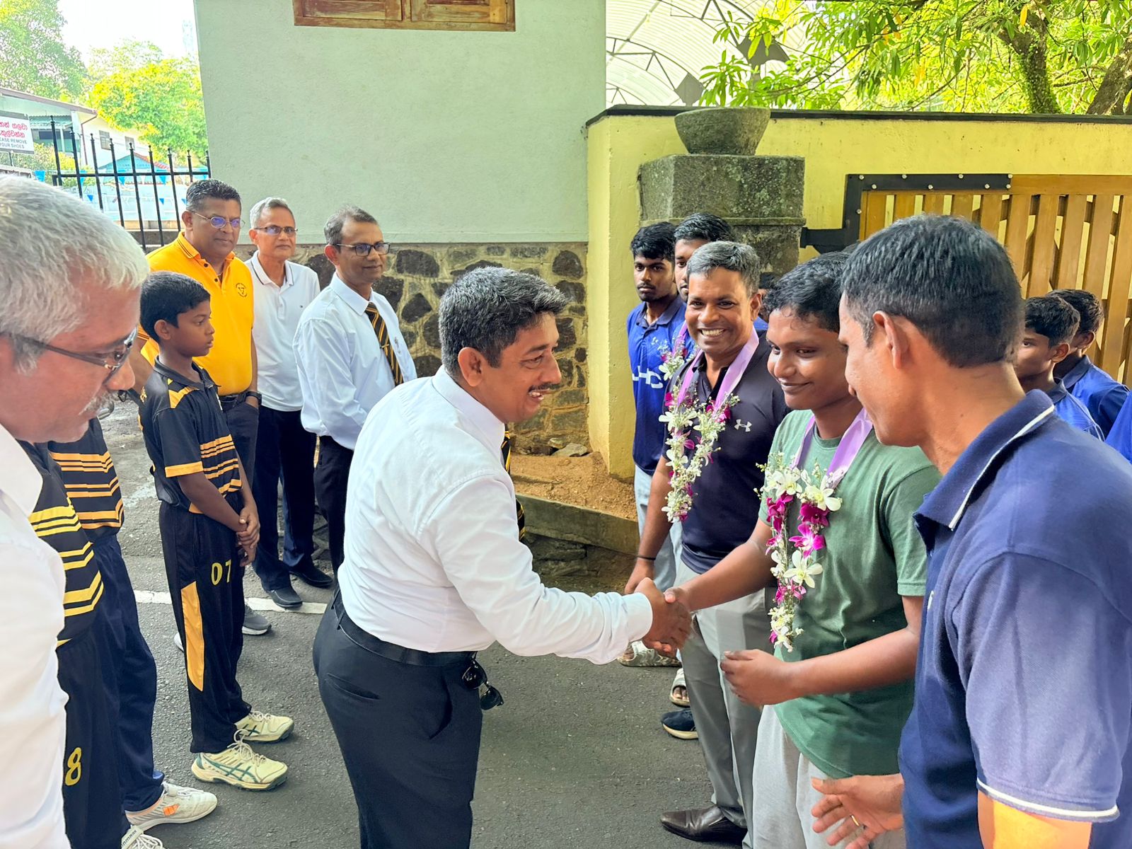 The Jaffna Hindu College team received a heartfelt welcome at the gates of Mahinda College by fellow Mahindians, members of the school cricket and debating team, and representatives from Mahindians UAE and the Mahinda Club.