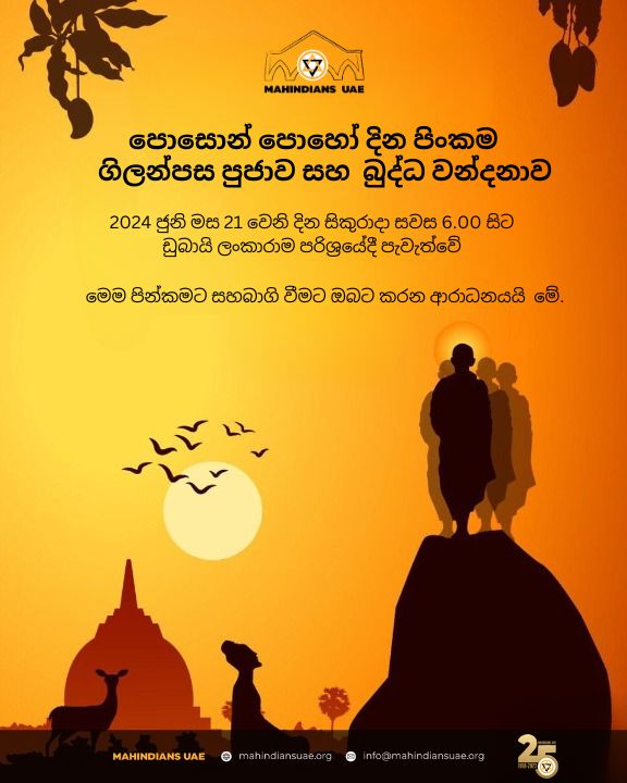 The Poson Poya Pinkama at Dubai Lankaramaya was a profound celebration of faith, tradition, and community spirit, leaving attendees with hearts filled with peace and minds enriched by the timeless teachings of the Buddha.
